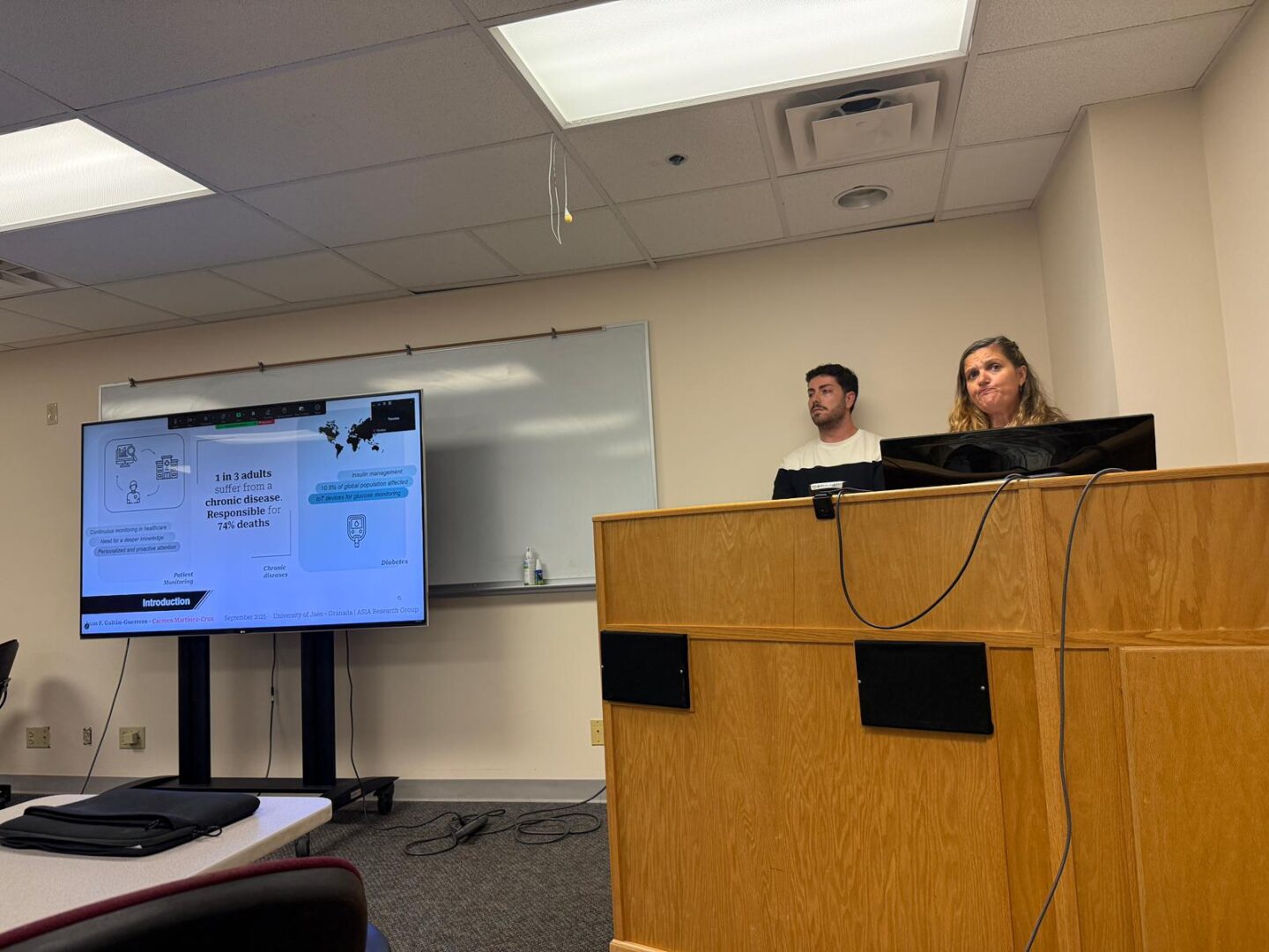 La sesión fue impartida por los investigadores Carmen Martínez Cruz y Juan F. Gaitán Guerrero, integrantes del equipo de MicroChip4Age, quienes presentaron los fundamentos y desarrollos más recientes del proyecto en el Departamento de Informática Biomédica, Bioestadística y Epidemiología Médica, donde actualmente Gaitán realiza una estancia de investigación. Este departamento es un referente internacional en docencia e investigación en informática sanitaria, salud pública y análisis de datos clínicos.